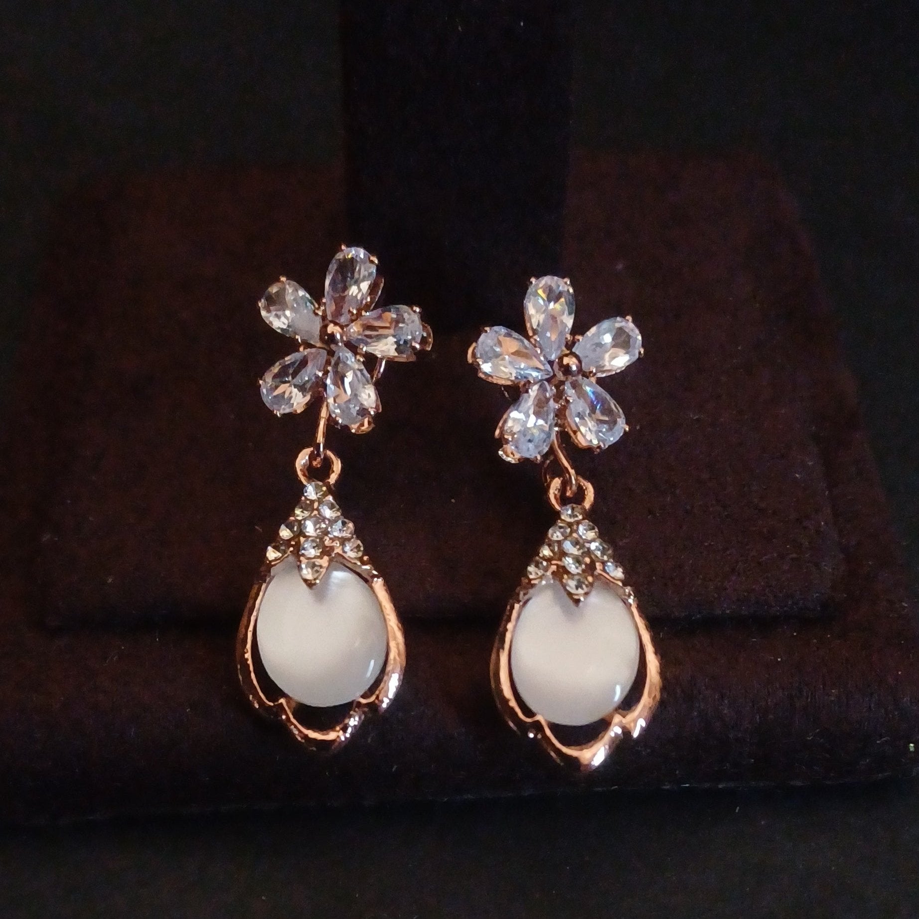Dazzling flower & pearl diamond Earrings - American Diamonds