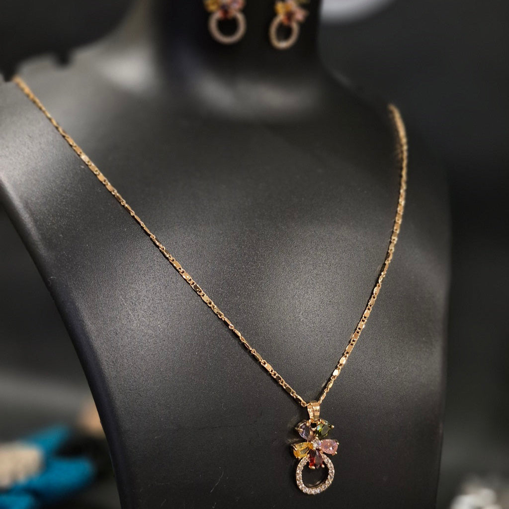Diamond Flower Multicolor American Diamond Necklace