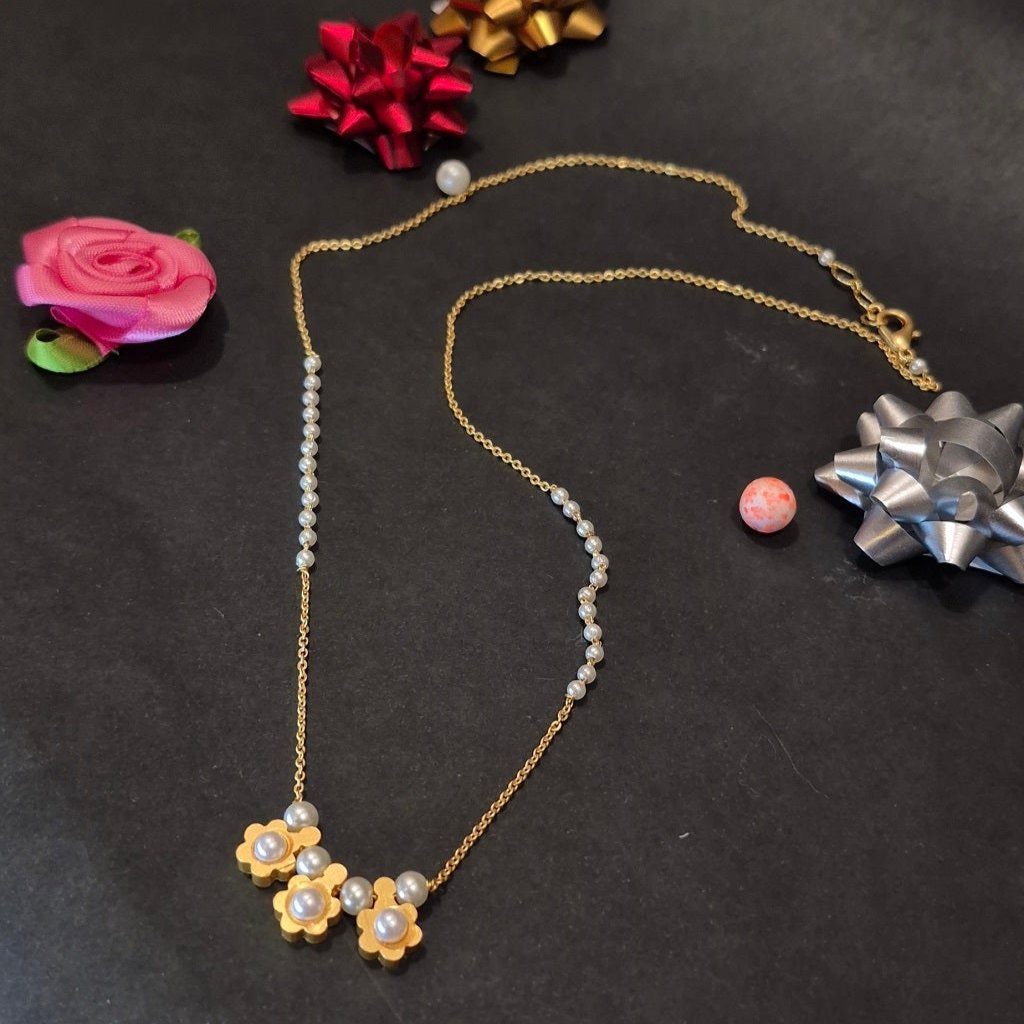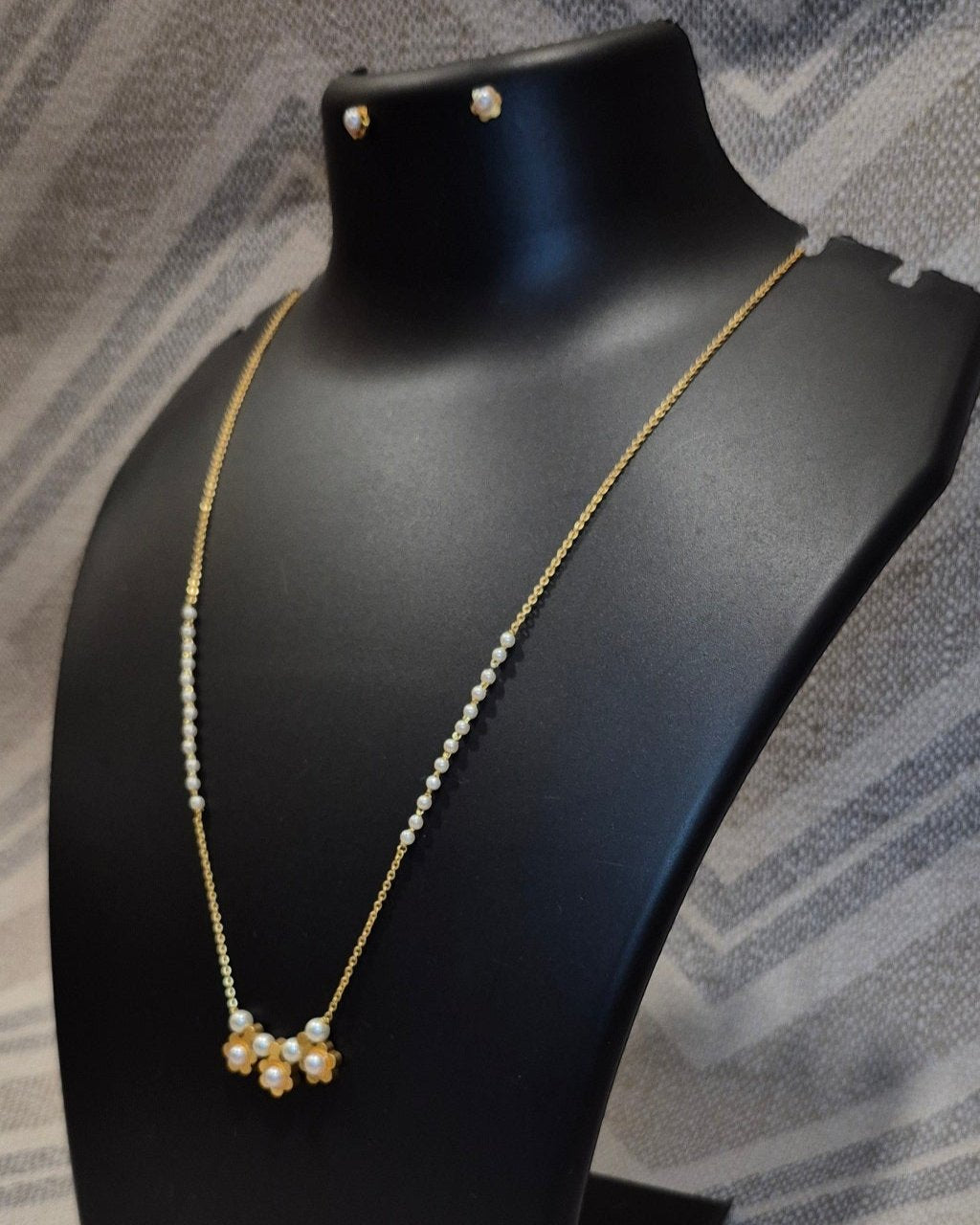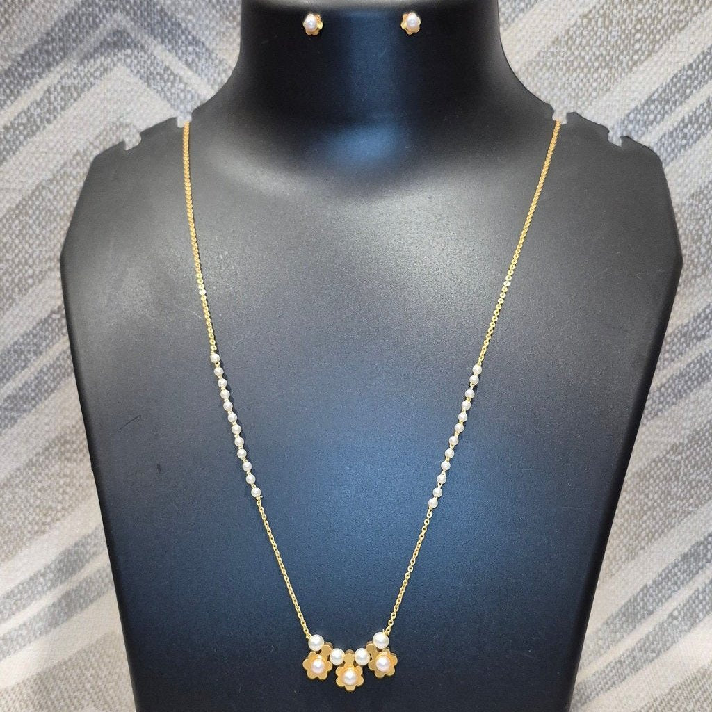 White bliss pearl chain necklace gold embelished pendant with matching ear tops
