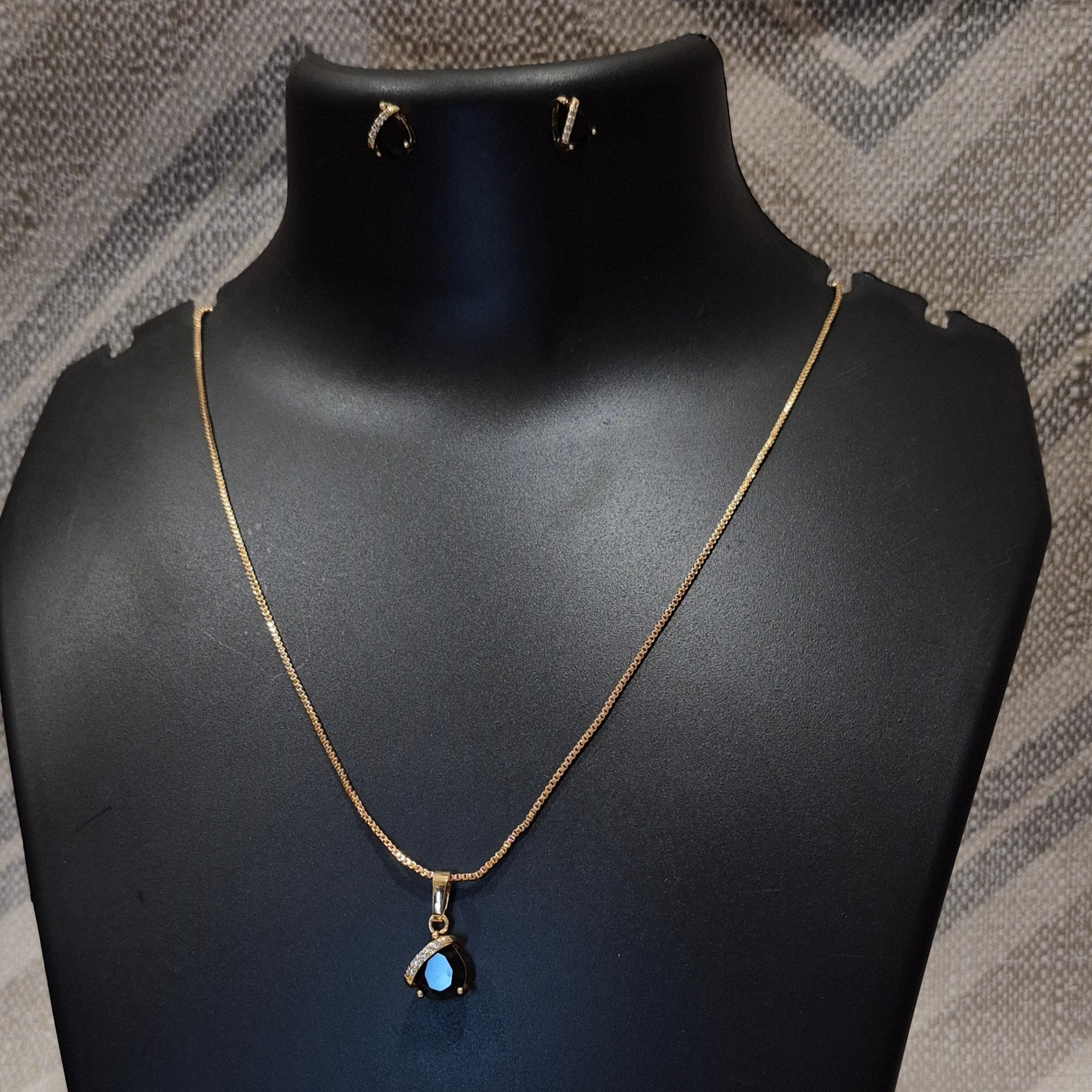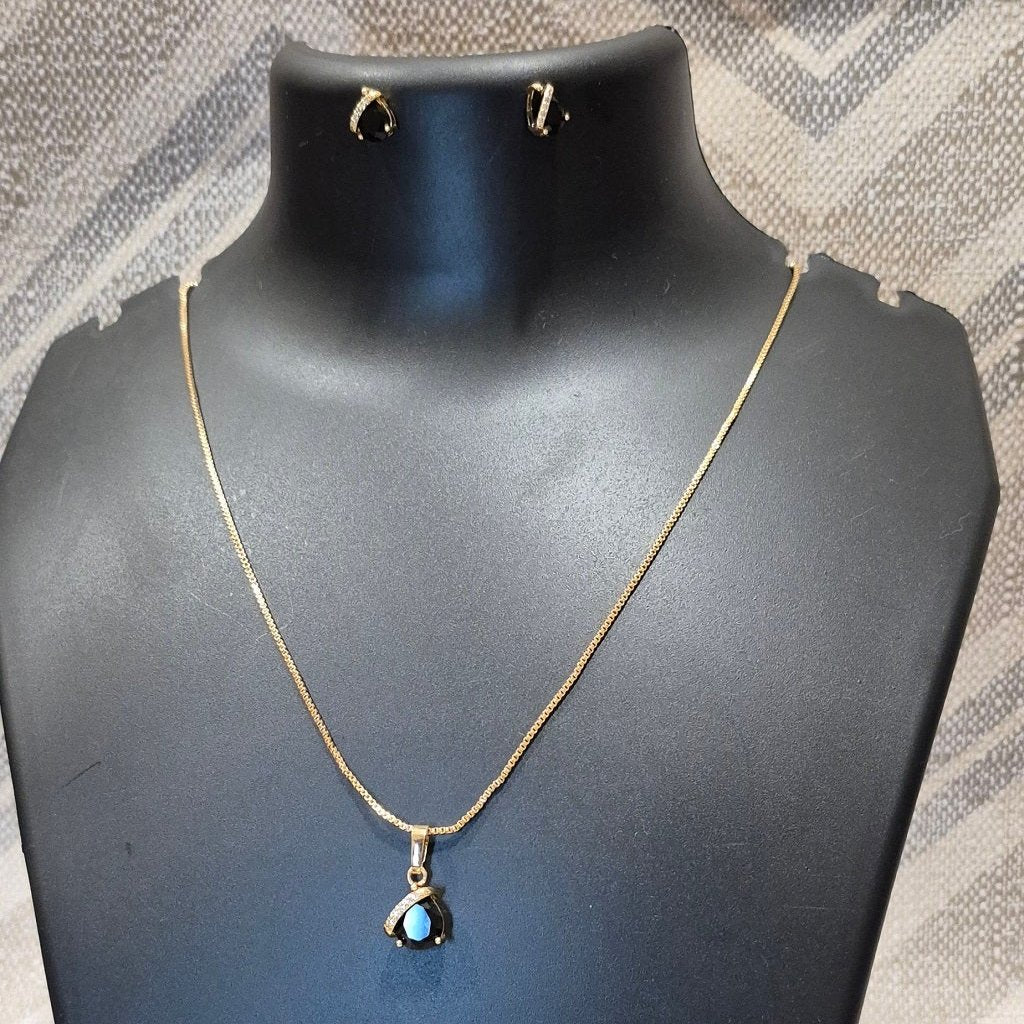 Royal black necklace with bold pendant and ear tops for Girls and women