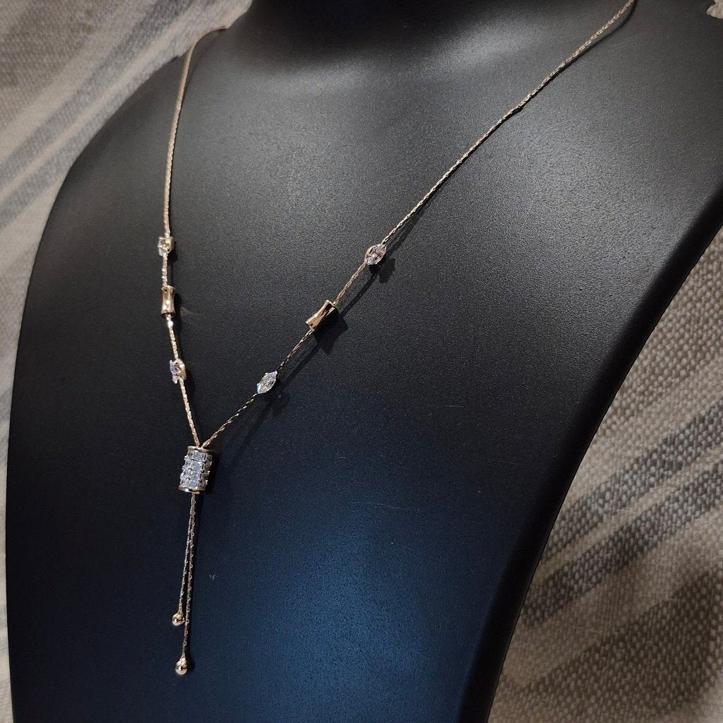 Indulge in luxury with our Elegant Necklace. Made from high quality stainless steel & Bold American Diamonds , this anti-tarnish piece is a timeless addition to any collection. The unique design of infinity makes it a meaningful gift for her. Elevate your look with our exclusive necklace..