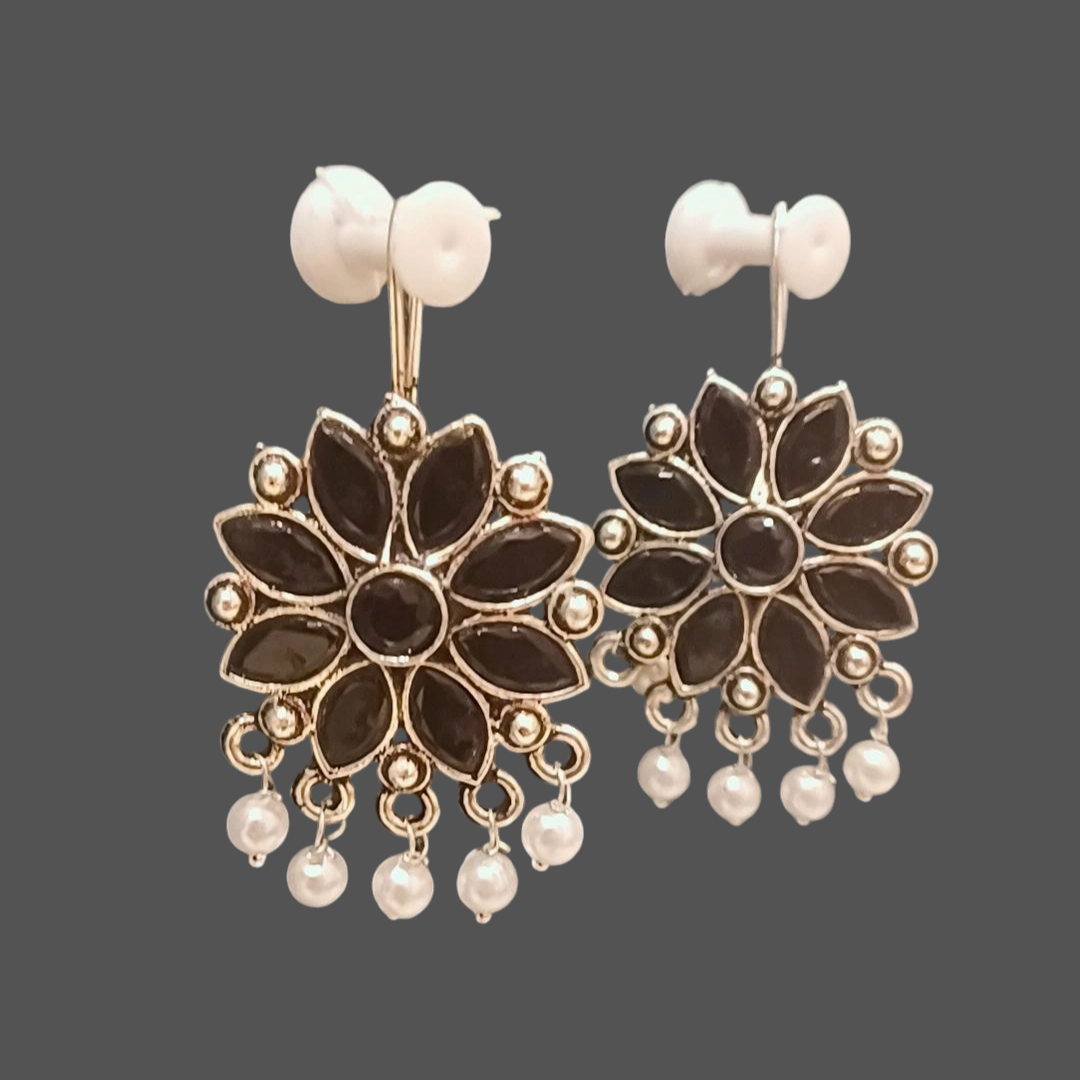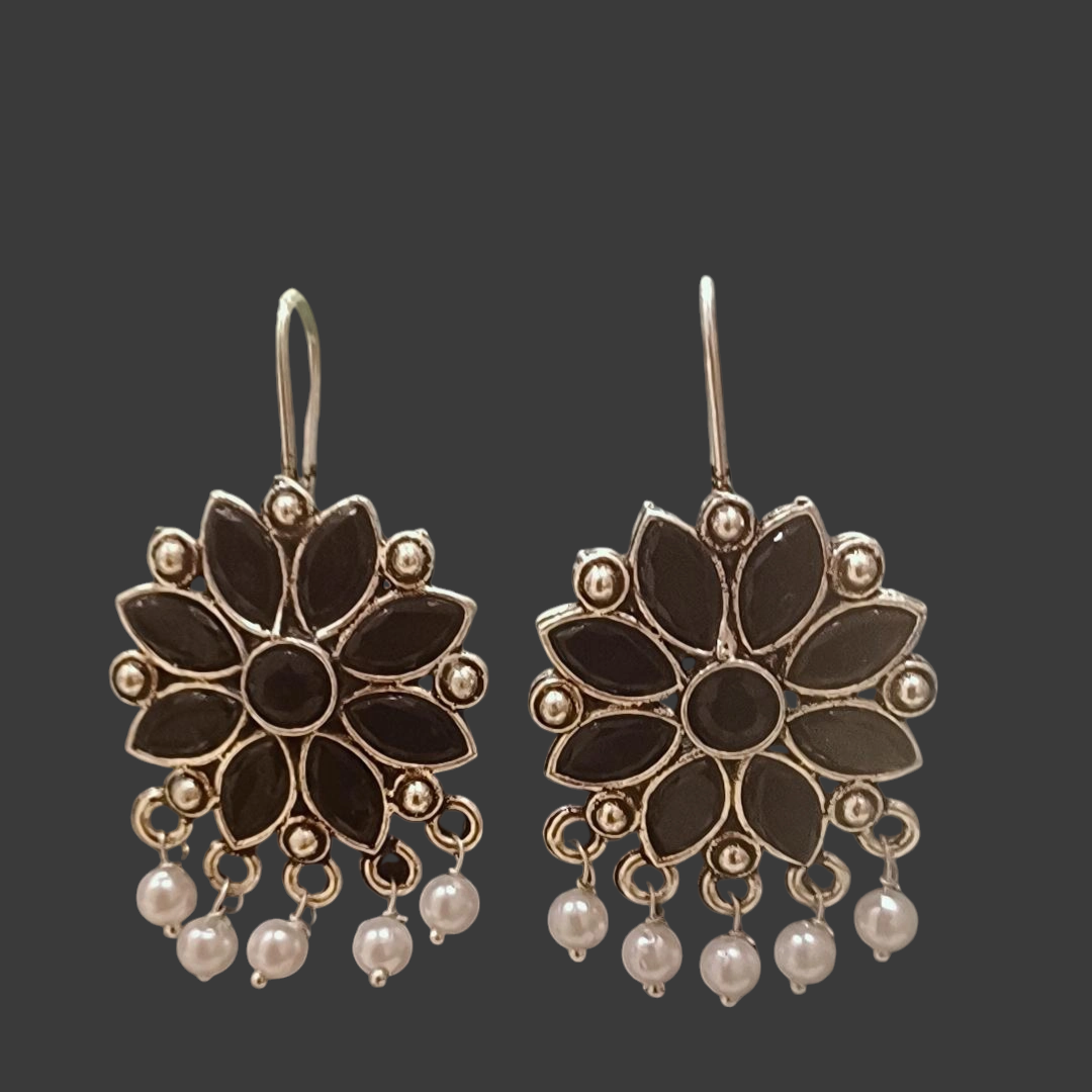 Add a touch of elegance to any outfit with our Flower of Stone - Bold Black Earrings. Made from the finest materials, these earrings are both stylish and durable. Perfect for any occasion, these earrings are sure to make a statement and elevate your look.