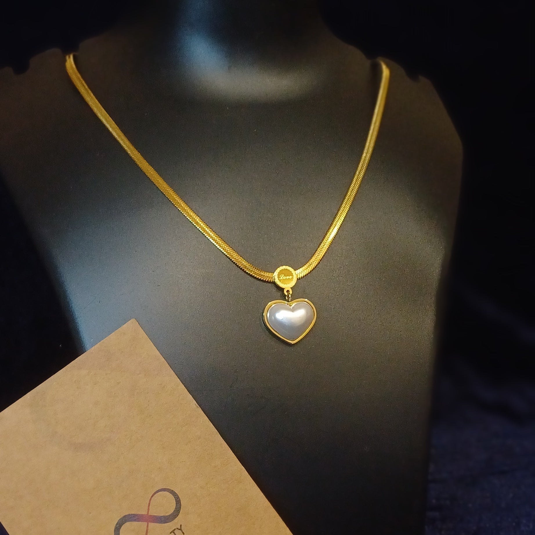 Gold snake chain with heart pendant statement necklace_stainless steel_Anti tarnish
