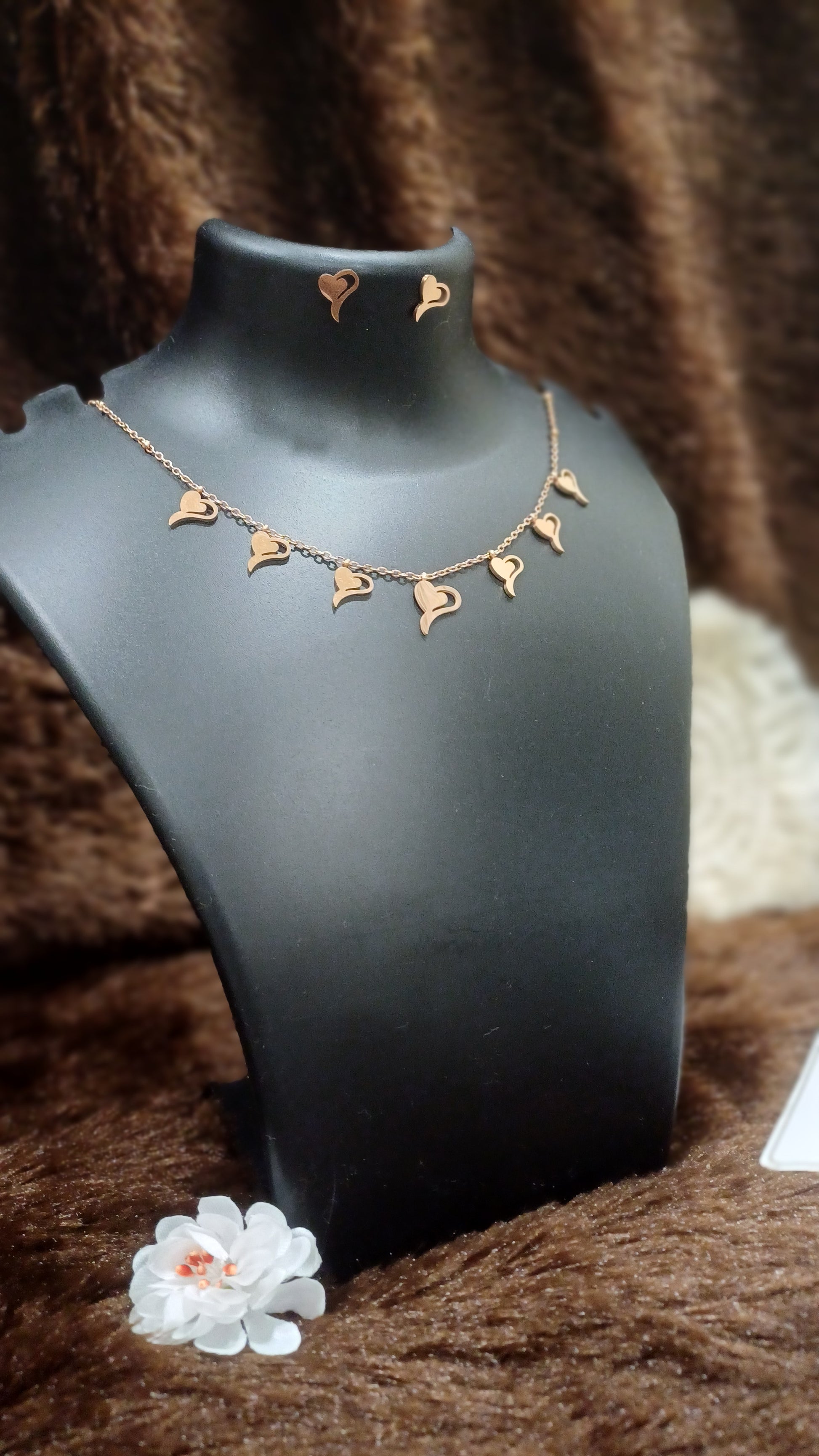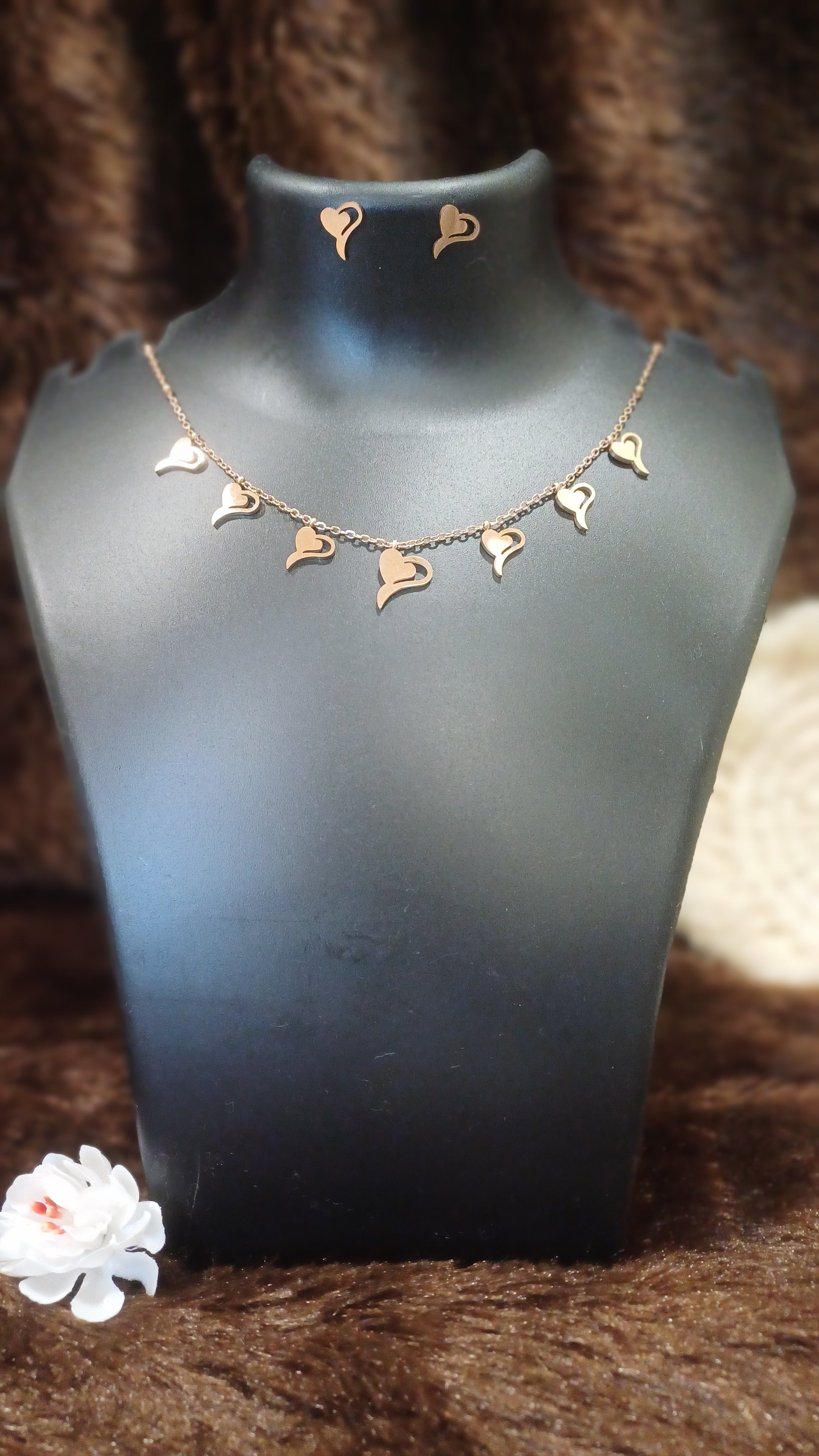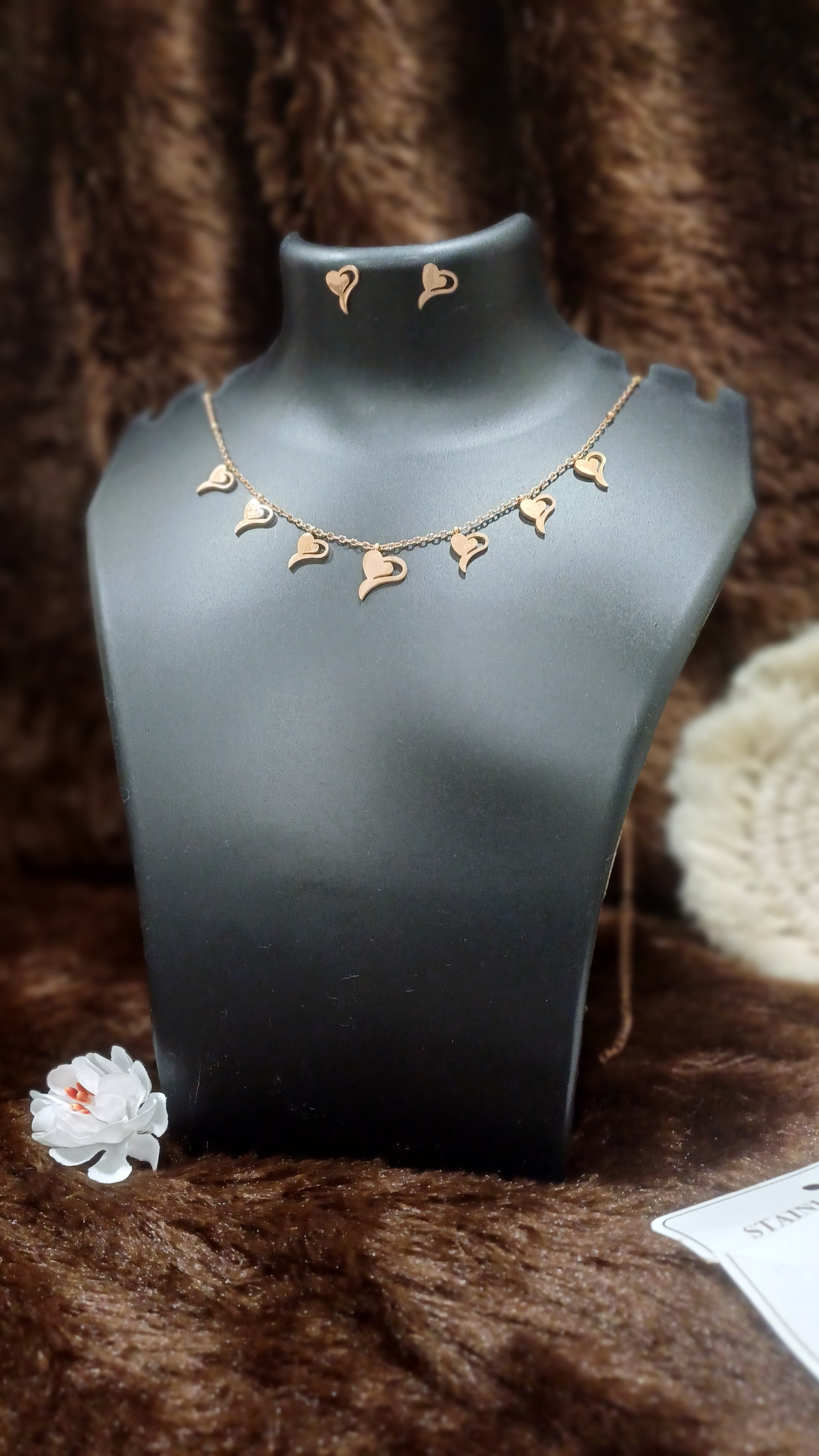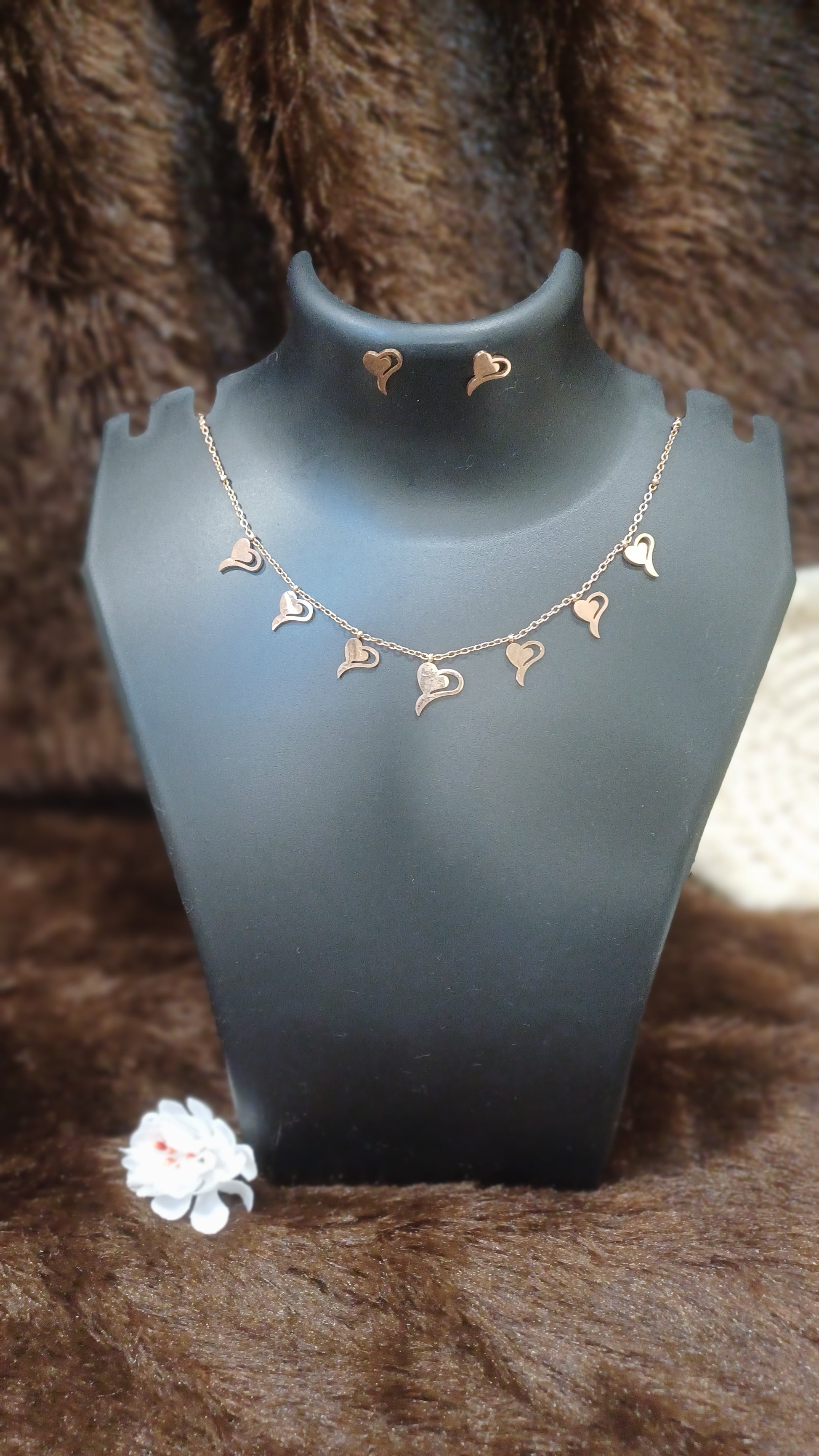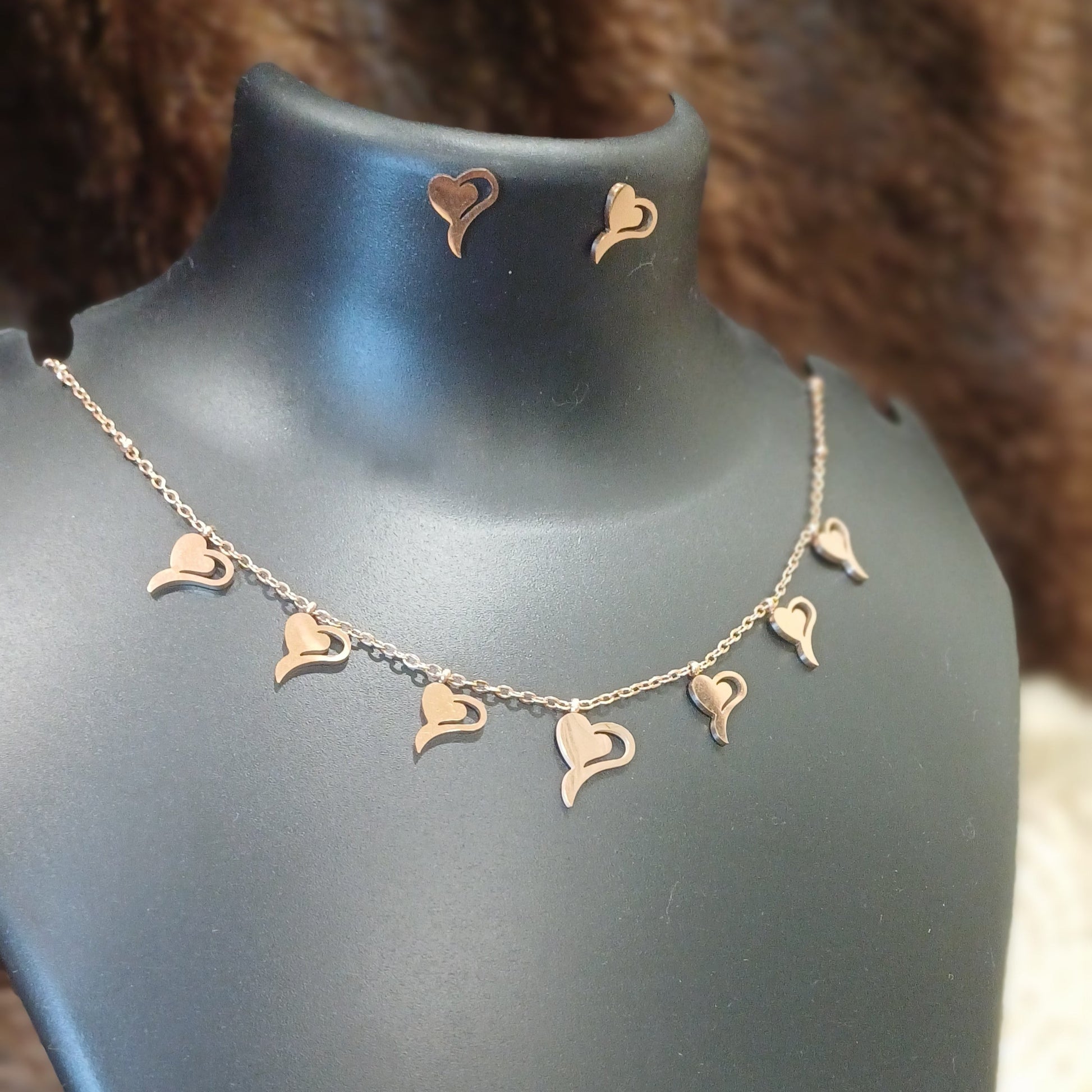 Hearts everywhere statement chain with hangings and matching earrings_anti tarnish