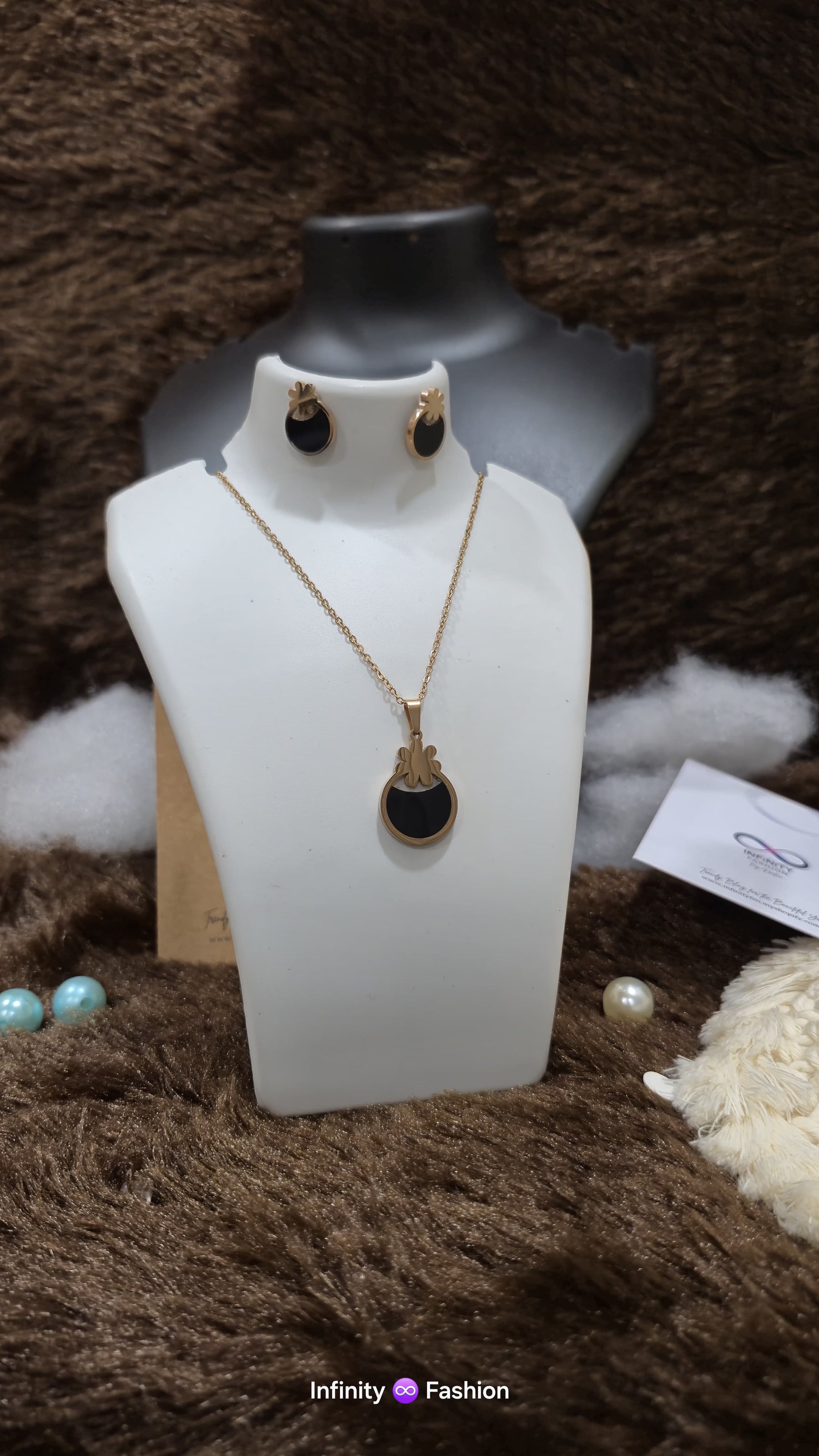 Hues of Black and gold chain pendant with matching earrings_anti tarnish _high quality material