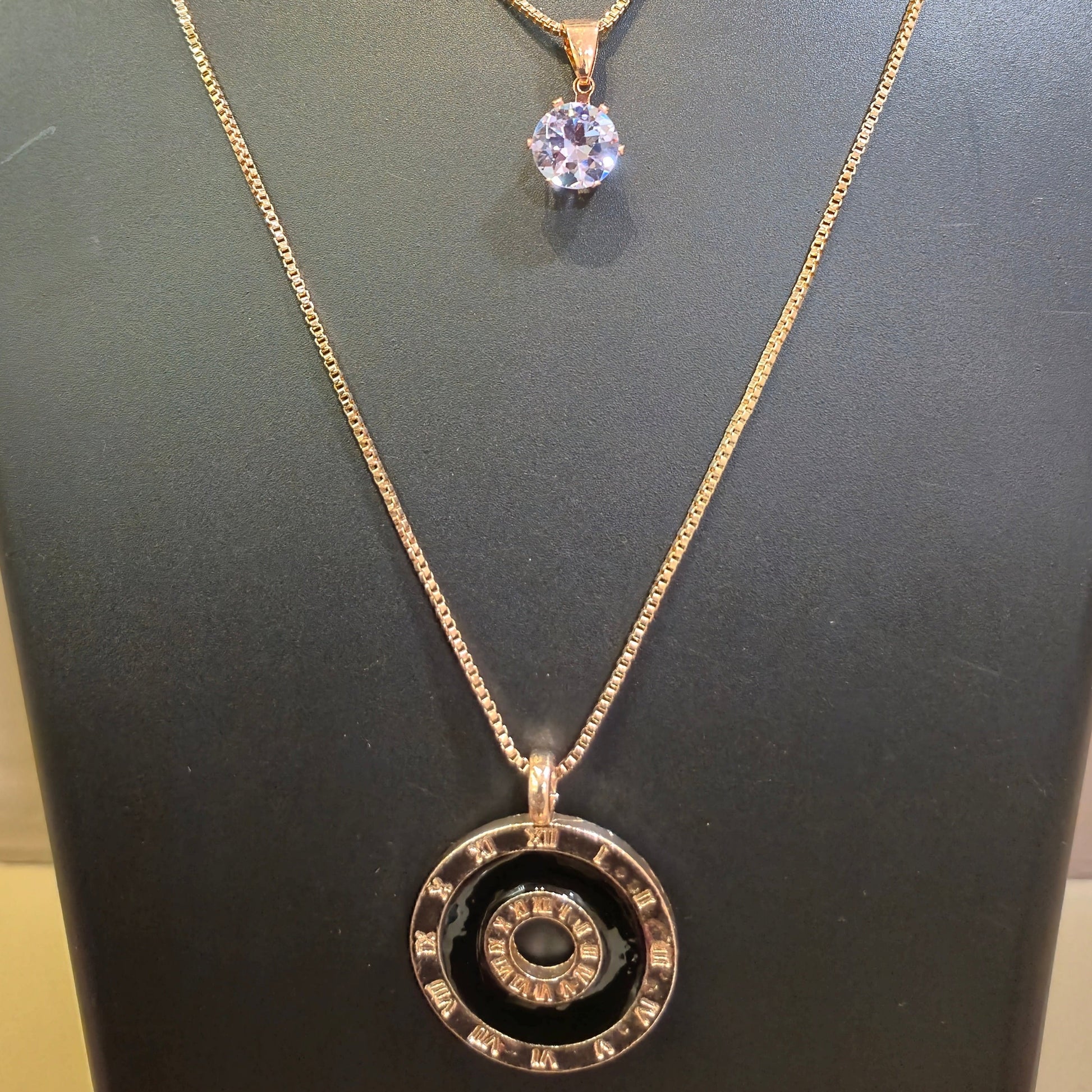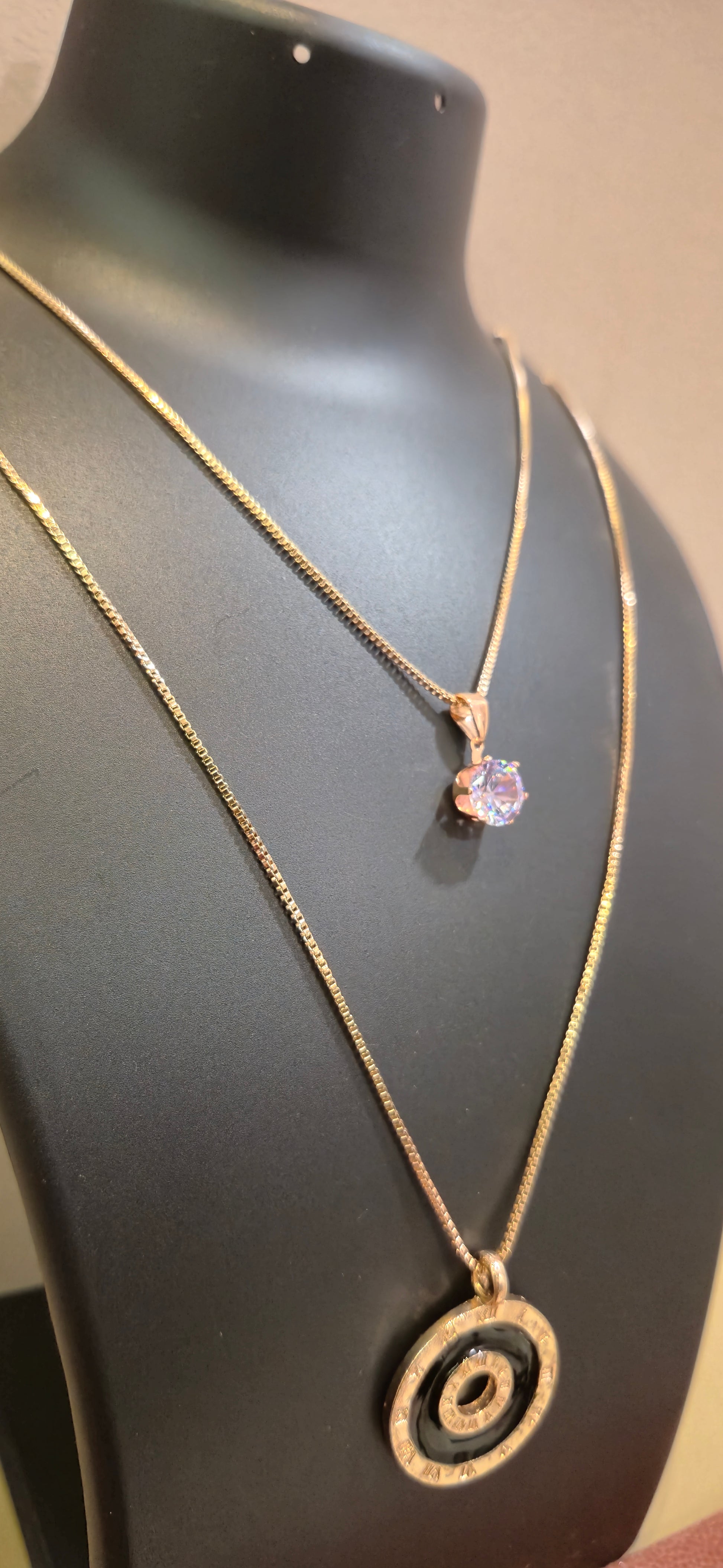 Enhance your outfit with these elegant double chain neck chains, adorned with unique pendants. The double chain design adds a touch of sophistication, while the pendants add a personal touch. Perfect for adding a subtle yet stylish element to any look.