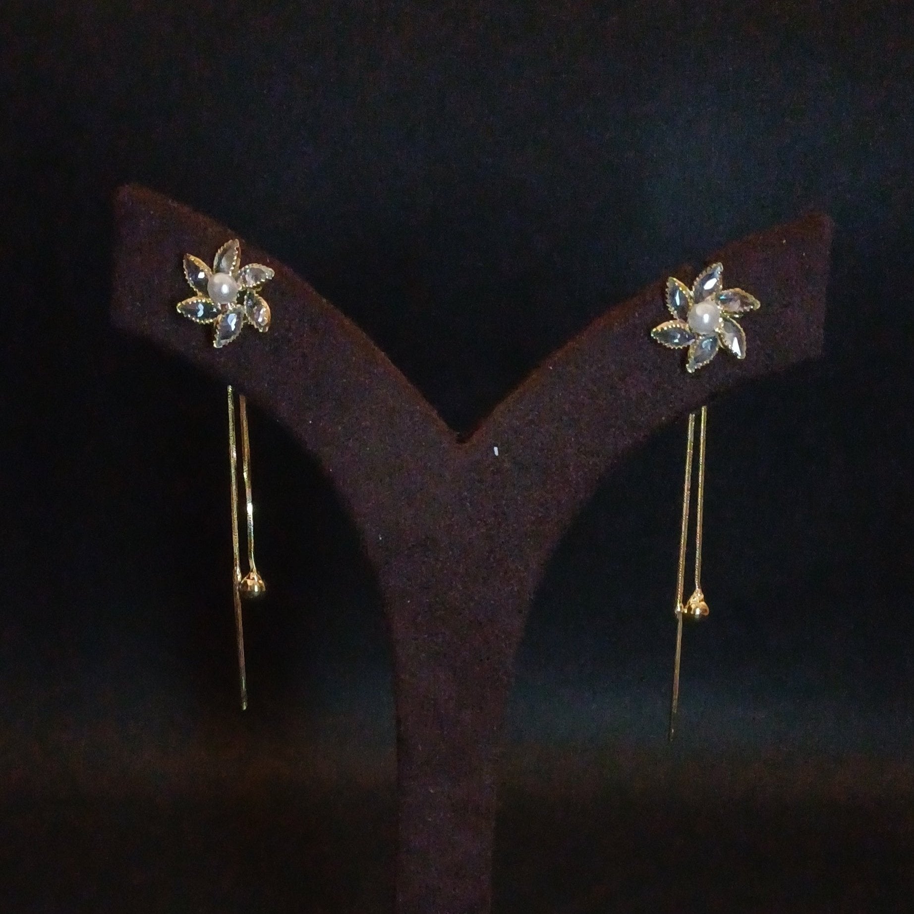 Premium Party Earring - AD Flower with Hangings