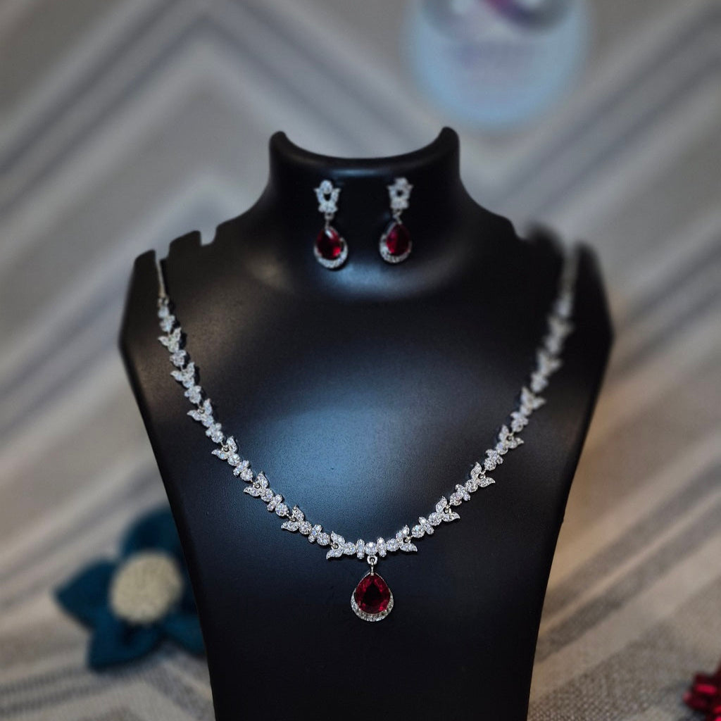 Indulge in luxury with our stunning Ruby Red Necklace and Earrings set. The deep hue of the rubies evoke a sense of elegance and sophistication. Perfect for any formal occasion or to add a touch of glamour to your daily wardrobe. Elevate your style with this exquisite set.