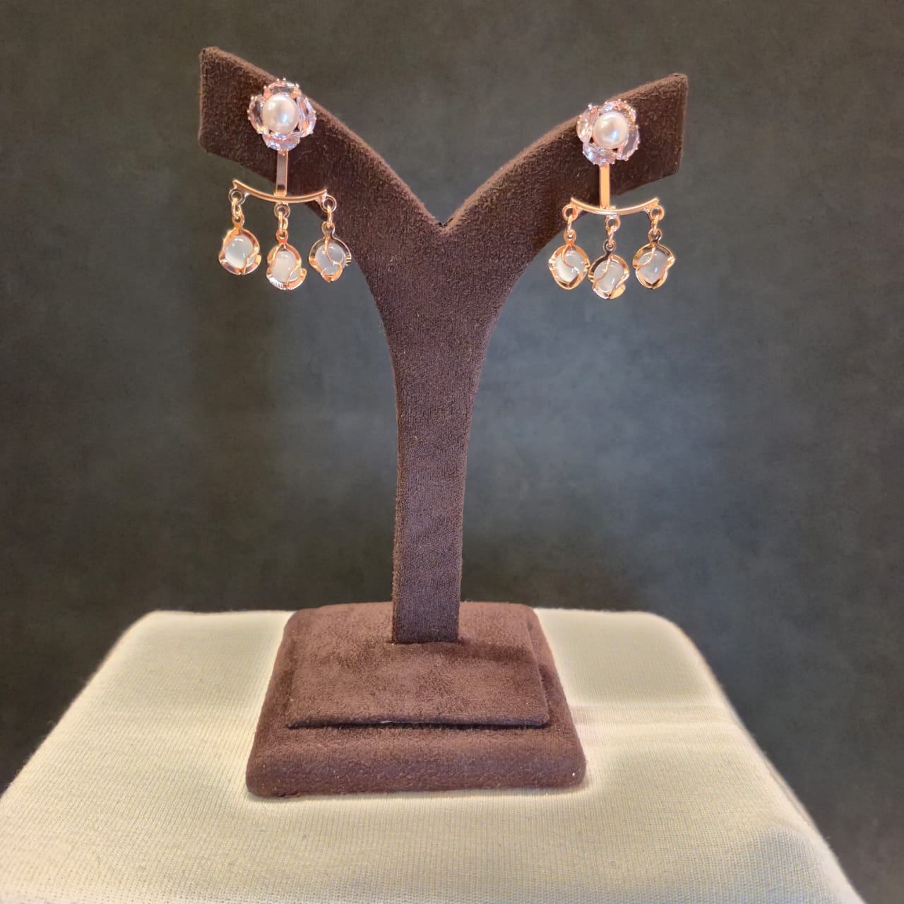 This Diamond Flower Pearl Jewelry piece sparkles with elegant sophistication. The diamond flower and pearl hangings are expertly crafted to offer a one-of-a-kind look that exudes luxury and style. Elevate your outfit with this stunning piece and make a statement.
