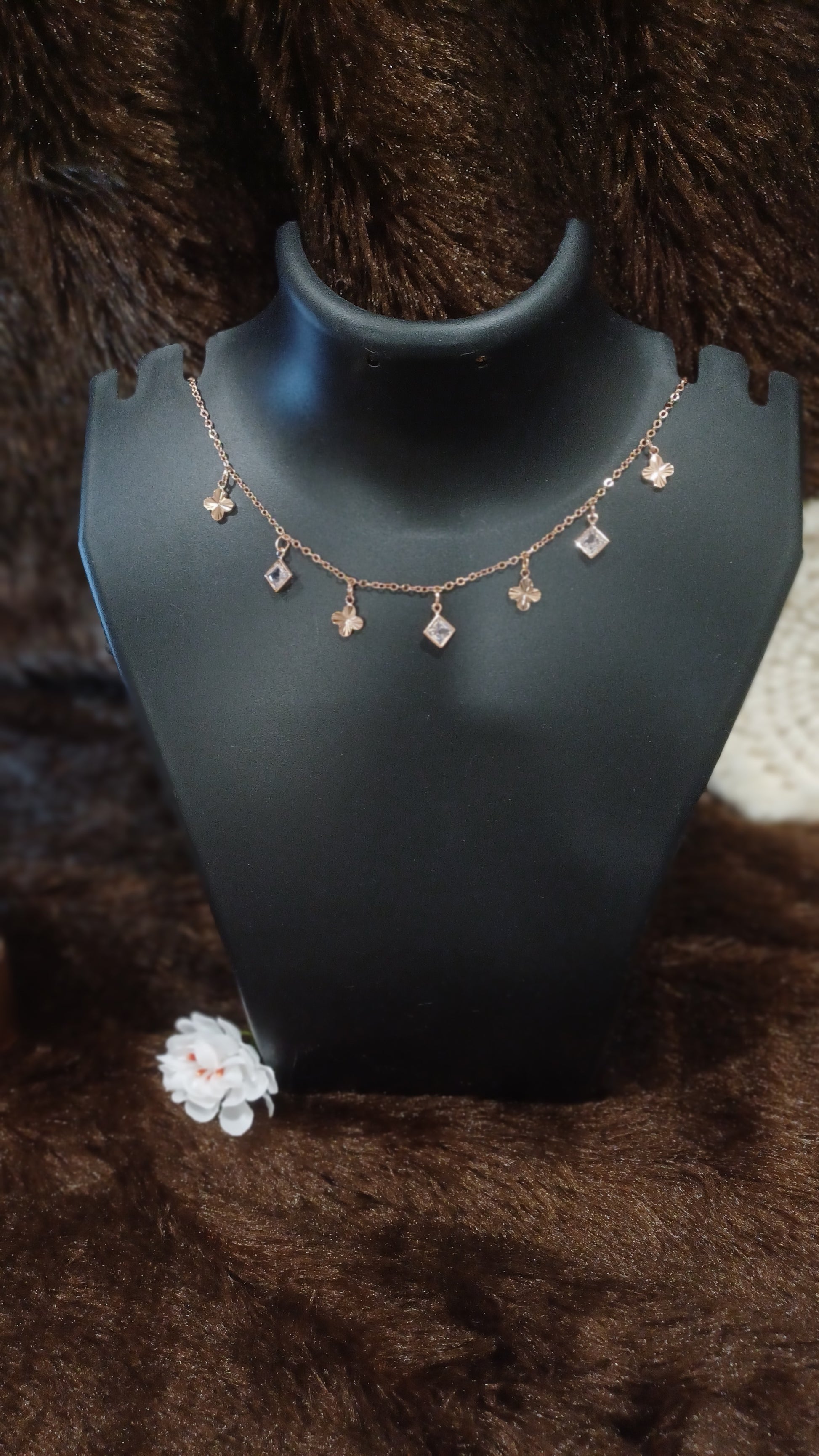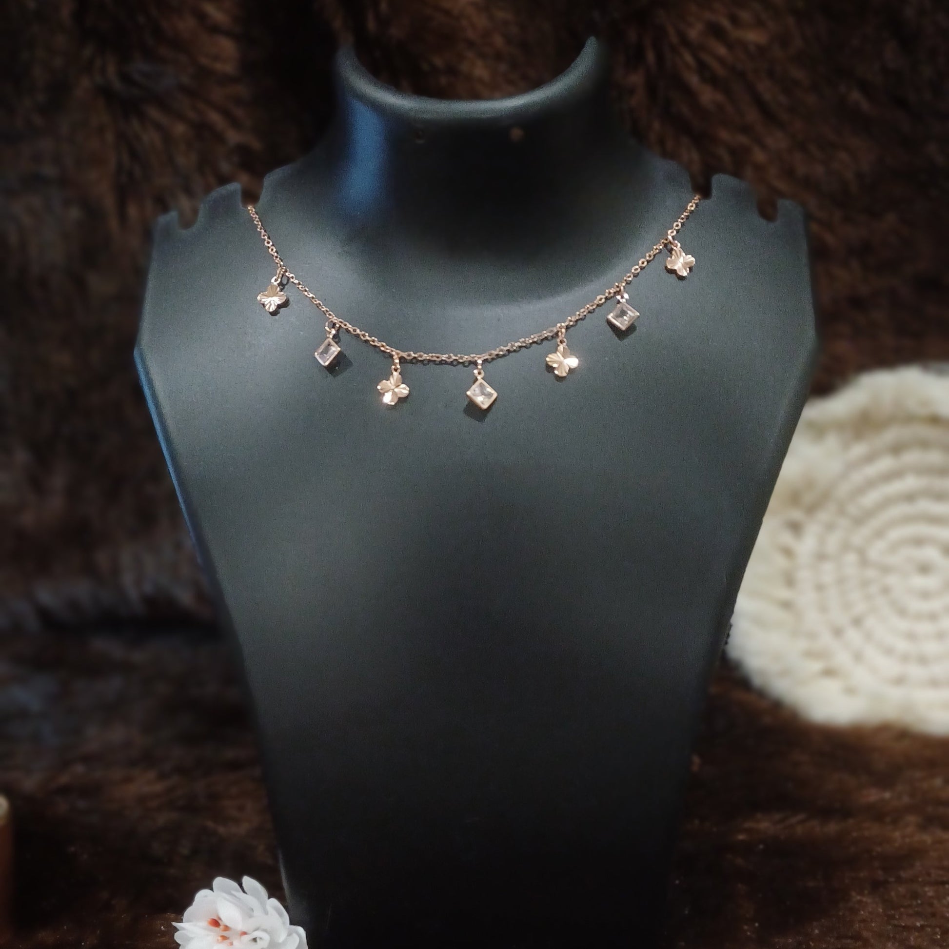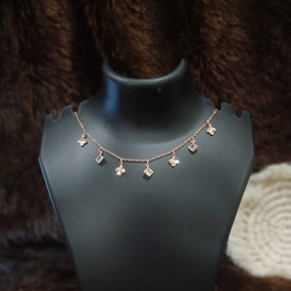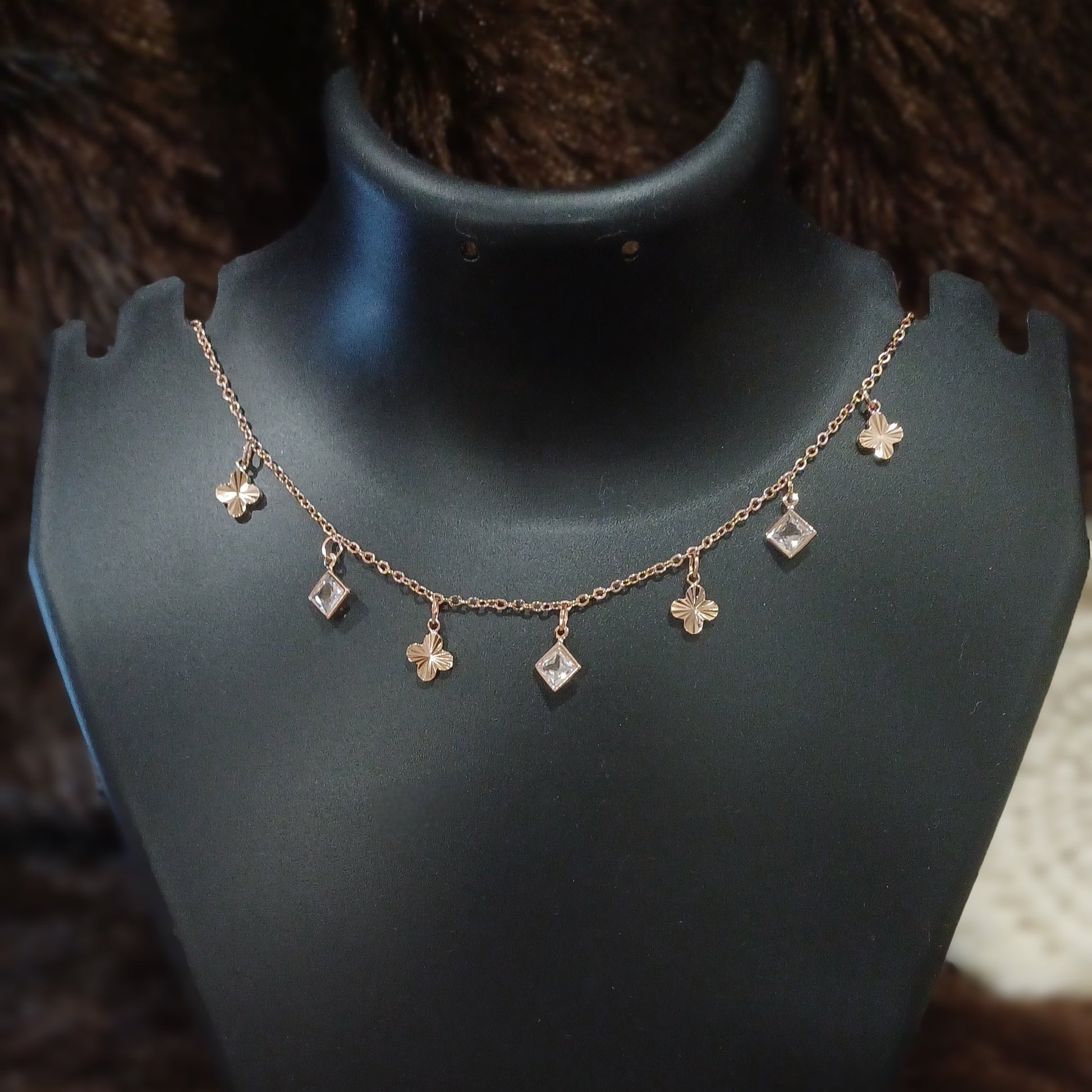 Elevate your style with our stunning statement necklace featuring hanging chimes and AD stones. This necklace is not only eye-catching, but also anti-tarnish for long-lasting wear. Make a statement and ensure your jewelry always looks its best.