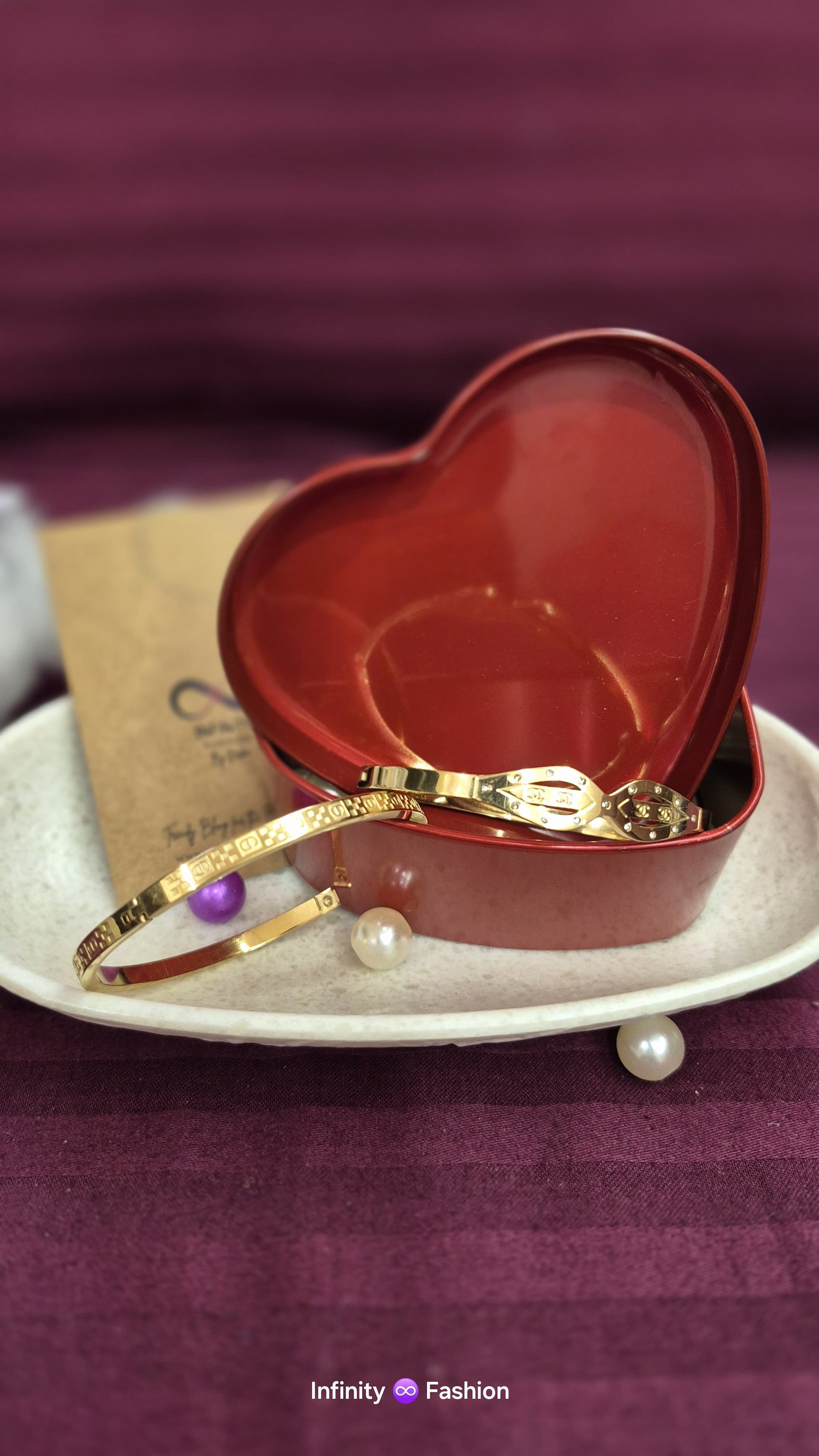 The Chanel engraved wrist band kada combo _ anti tarnish daily wear high quality hand cuff bracelet